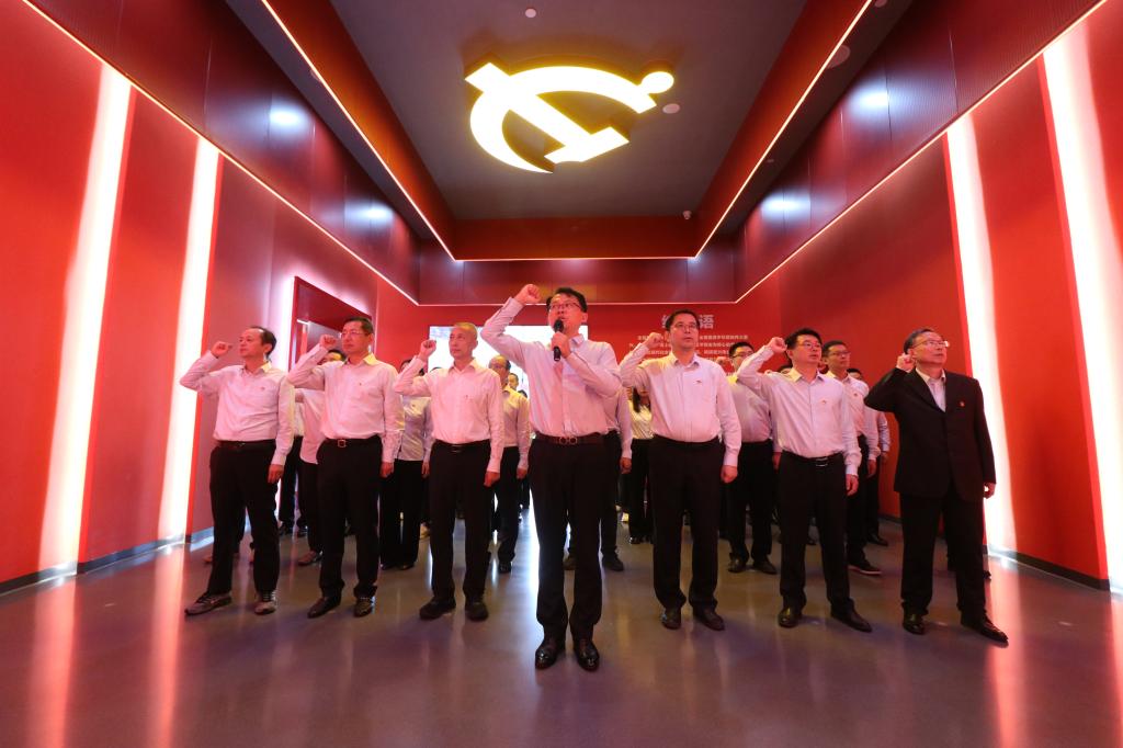 最后,全体党员面向党旗庄严宣誓,铿锵誓言回荡展厅,既是对初心使命的再次叩问,更凝聚了国元投资党员干部永葆清廉本色、忠诚担当尽责的坚定决心。